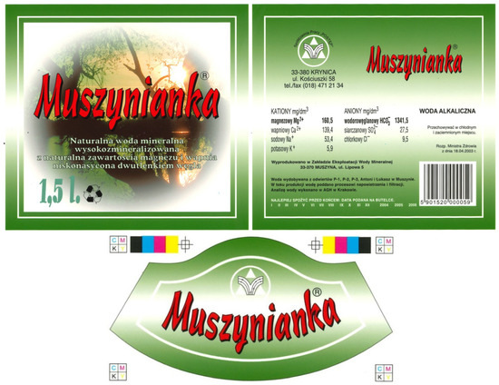- BizRaport. 2025. MUSZYNIANKA SP. Z O.O. KRS: 0000800687. Available online: https://www.bizraport.pl/krs/0000800687/muszynianka-spolka-z-ograniczona-odpowiedzialnoscia (accessed on 2 May 2025).