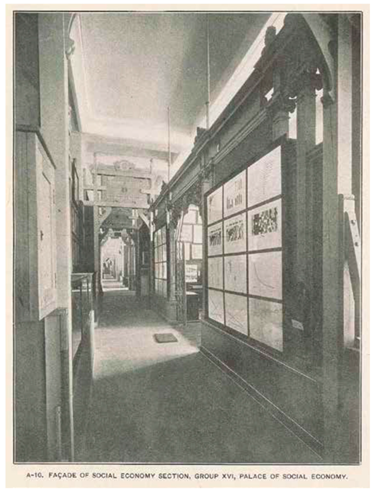 The “Exhibit of American Negroes,” in the Palace of Social Economy at the Paris Universal Exposition of 1900, comprised an array of media. The main gallery was about twelve feet wide and included framed charts and photographs, photographic books, texts published by African American authors, and other mixed media pieces designed to demonstrate vibrant African American culture and life, with particular focus on the years following Emancipation in 1863 (