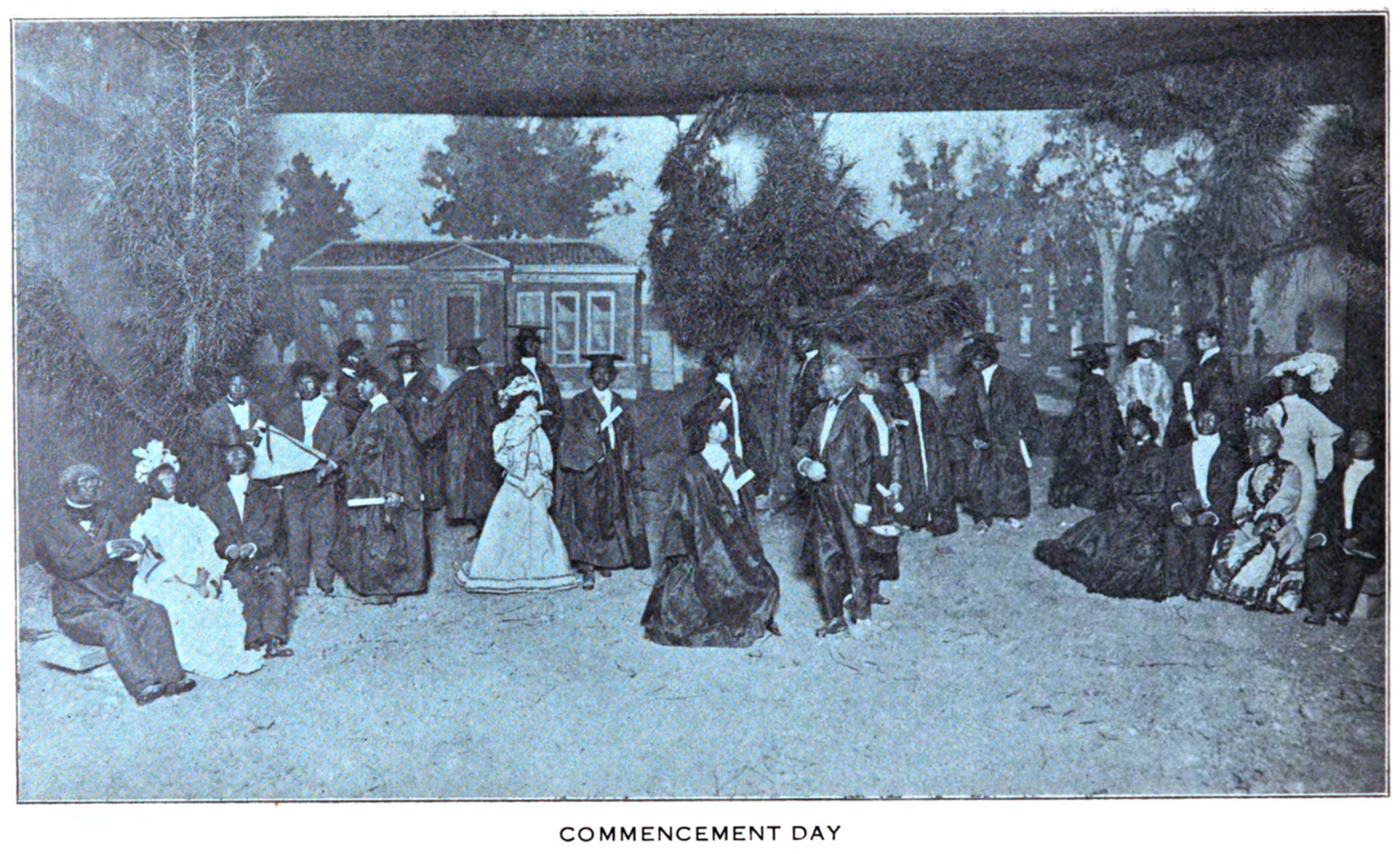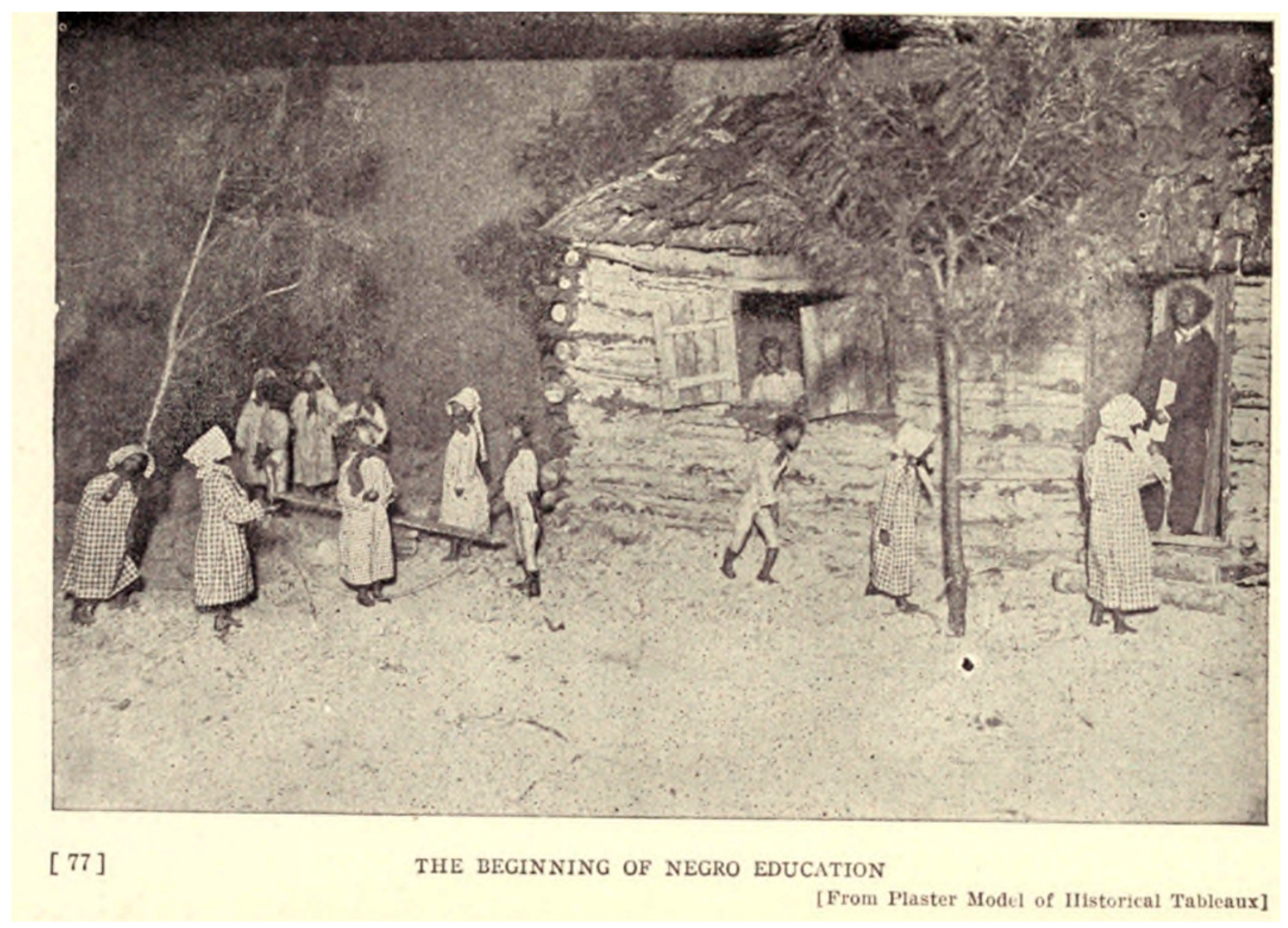 Peck 1901, vol. 2, p. 409). One reporter explained that they comprised “miniature figures of persons, school-houses and surroundings,” tracing episodes in the progress of African Americans in the United States through the built environment with the school as a metaphor: “from the most primitive backwoods hut to the finely-appointed and commodious colored high school building in Washington” (