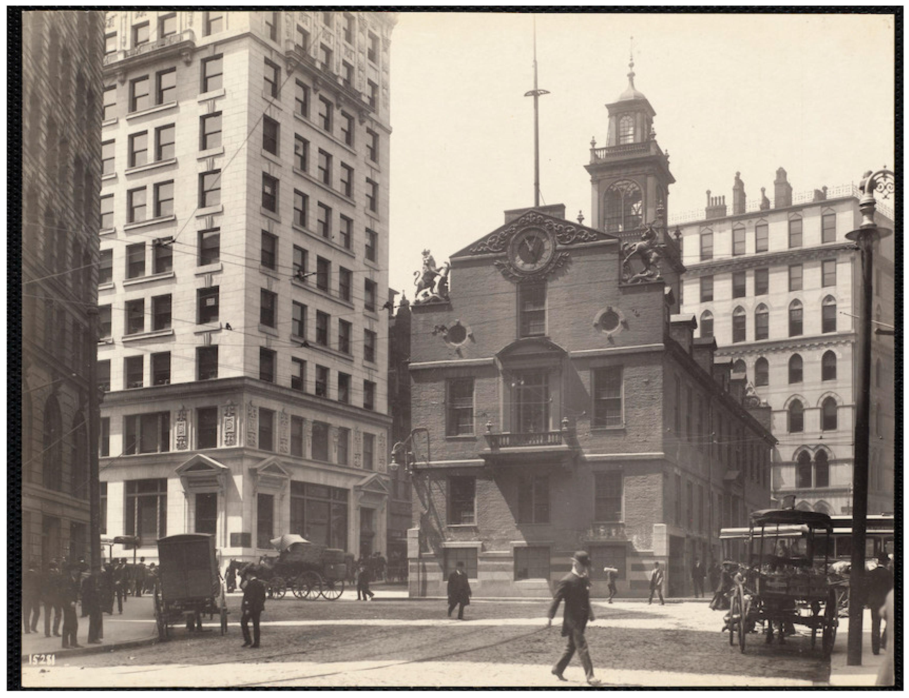 Figure 40). Their placement heightens the effect of spatial recession produced by the buildings at left and right of the Old Massachusetts State House. The extant model enables us to observe how the architectural renderings visually transport the viewer in time and space (