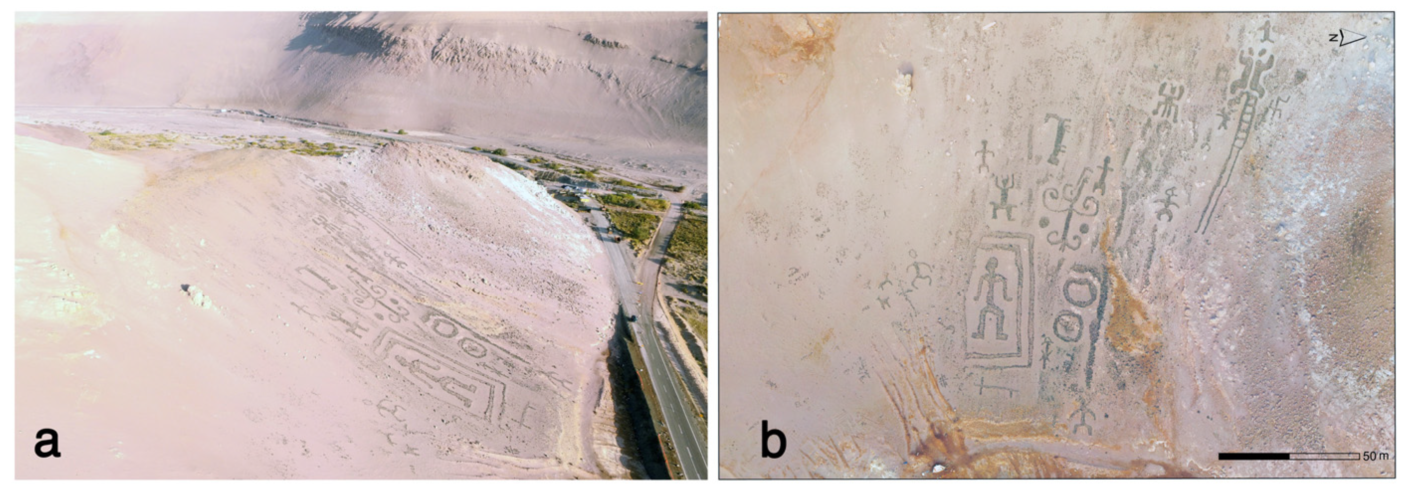 - Valenzuela, Daniela, and Indira Montt. 2018. Exploring rock paintings, engravings, and geoglyphs of the Atacama Desert through materiality, style, and agency. In Archaeologies of Rock Art: South American Perspectives. Edited by Andrés Troncoso, Felipe Armstrong and George Nash. London and New York: Routledge, pp. 179–208. [Google Scholar]