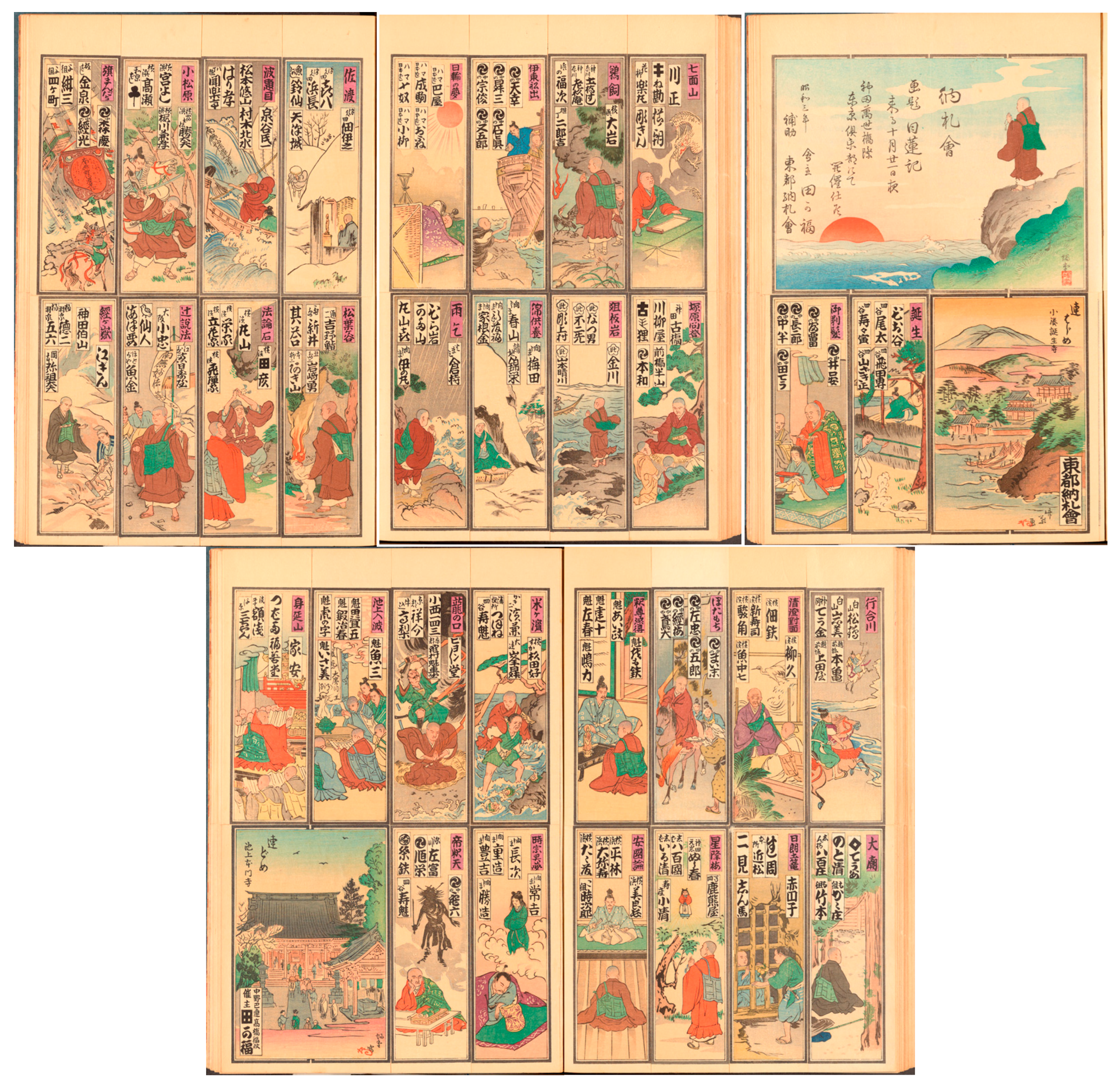 chō slips datable to 1916 representing all eighty-eight temples in the Gofunai 御府内 or “Metropolitan” pilgrimage circuit. This circuit was established in the eighteenth century as an Edo equivalent (