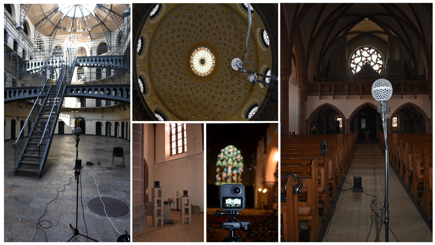 Figure 4 offers examples of audio and video capture in the sites. In the studio, site recordings were synchronized with original stem mixes, with selections based on minimal environmental noise or positions that enhanced the final mix.