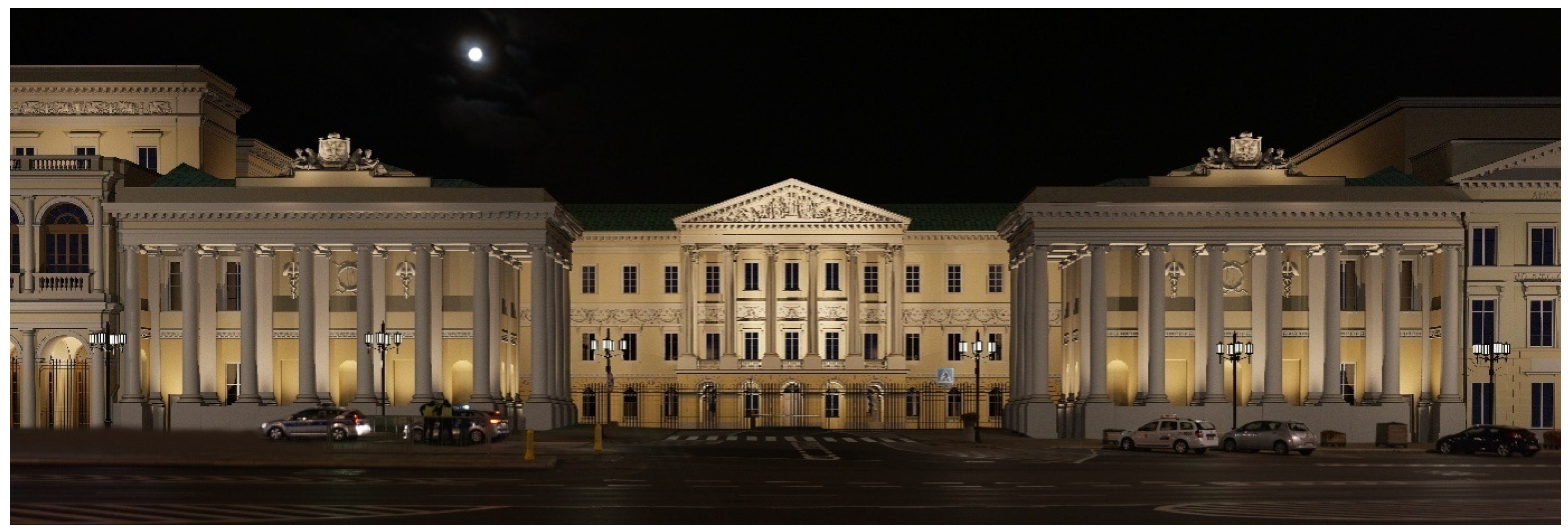 Yi et al. 2024), which is theoretically possible but costly. Therefore, the authors decided to use virtual reality to simulate the lighting of the object. For this purpose, a computer simulation of the lighting of the complex of former government buildings at Bank Square in Warsaw was used (