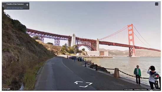 In 2007, French-Canadian artist Gregory Chatonsky completed Vertigo@home, an audiovisual work that reimagines Scottie’s peregrinations through San Francisco in Alfred Hitchcock’s Vertigo, using Google Streetview. Recalling pilgrimages that still exist to the film’s original shooting locations, Chatonsky leads us from the streets of Nob Hill to the Bay by following the white directional arrows of the navigation interface. Scottie (played by James Stewart) is, however, never visible, nor is any concrete action depicted. Vertigo is rather restituted or reassembled from a point of view that hangs over the streets and avenues, through the slightly elevated mechanical gaze of the Street Views cars that capture images of urban space (Figure 1 and Figure 2). Whenever the character is meant to enter a private residence, the screen turns black, marking the limit of what the navigation cameras can capture. The video thus takes on the aesthetics of a first-person video game or of a San Francisco-based round of GeoGuessr,1 particularly suited to a city that has itself been a pioneer in the development of urban cartographic visualization technologies.2 While the original narrative can no longer unfold, its path is maintained, especially as the soundtrack of Vertigo accompanies Chatonsky’s mechanical stroll, ensuring a sense of continuity between the shots.3 Scottie and Madeleine/Judy (both played by Kim Novak) are however replaced by anonymous passers-by, inadvertently caught by the Street View camera as they drift through the original film’s iconic locations (some places of the 1950s are still recognizable, while others have disappeared).