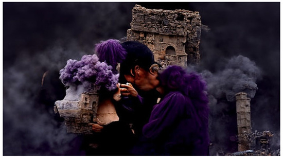 | 17 | See the artist’s brief description of the work on the artist’s website: https://chatonsky.net/kiss-3/ (accessed on 1 September 2025). |