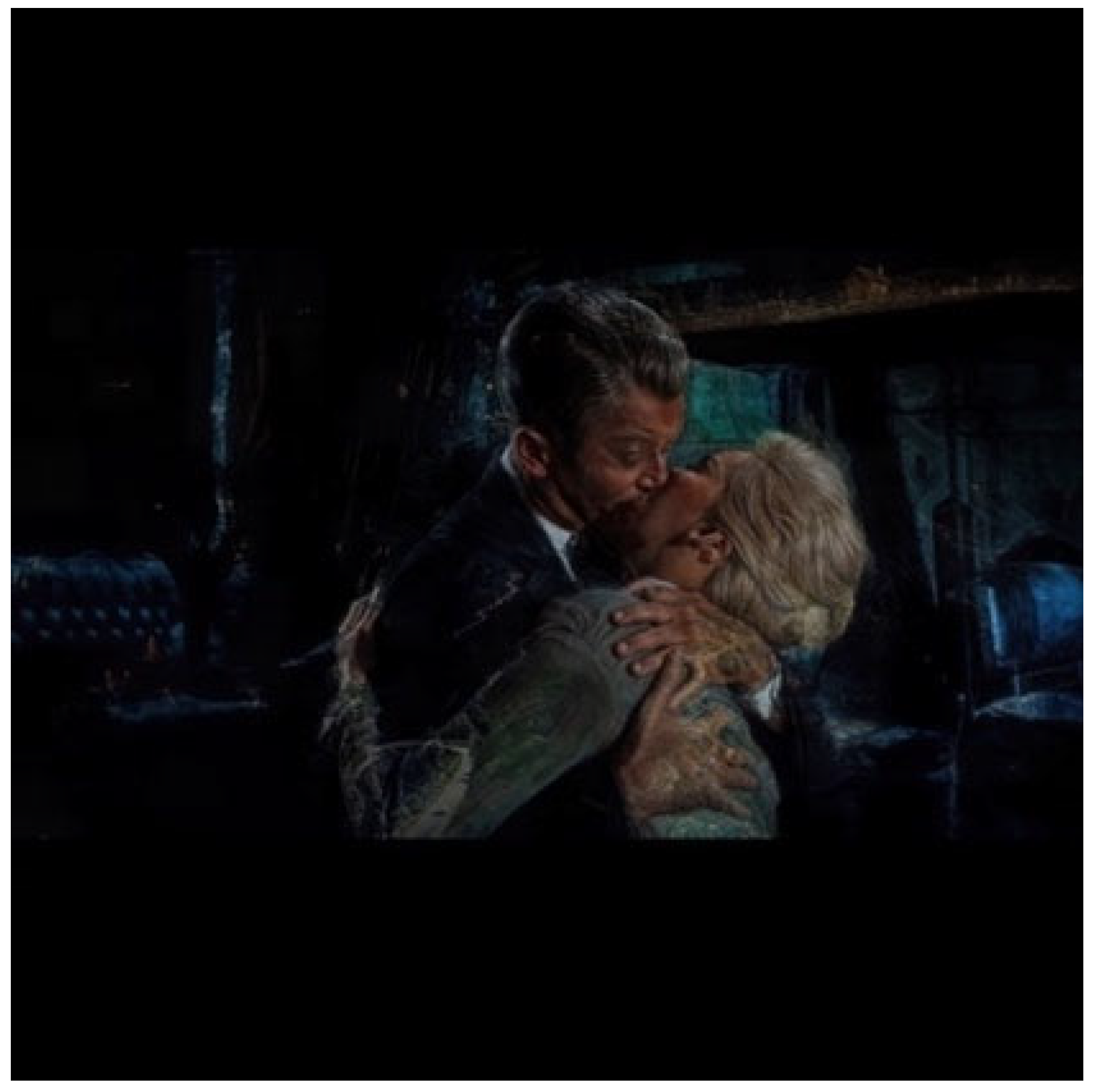 The Kiss 4, as it also underlines the potential aging or evolution of the characters. Right after the opening of the 5-min video, Scottie indeed appears with a thick gray mustache, Madeleine as a glowing green specter, or with hardened features that accentuate the potential passage of time since the first occurrence of