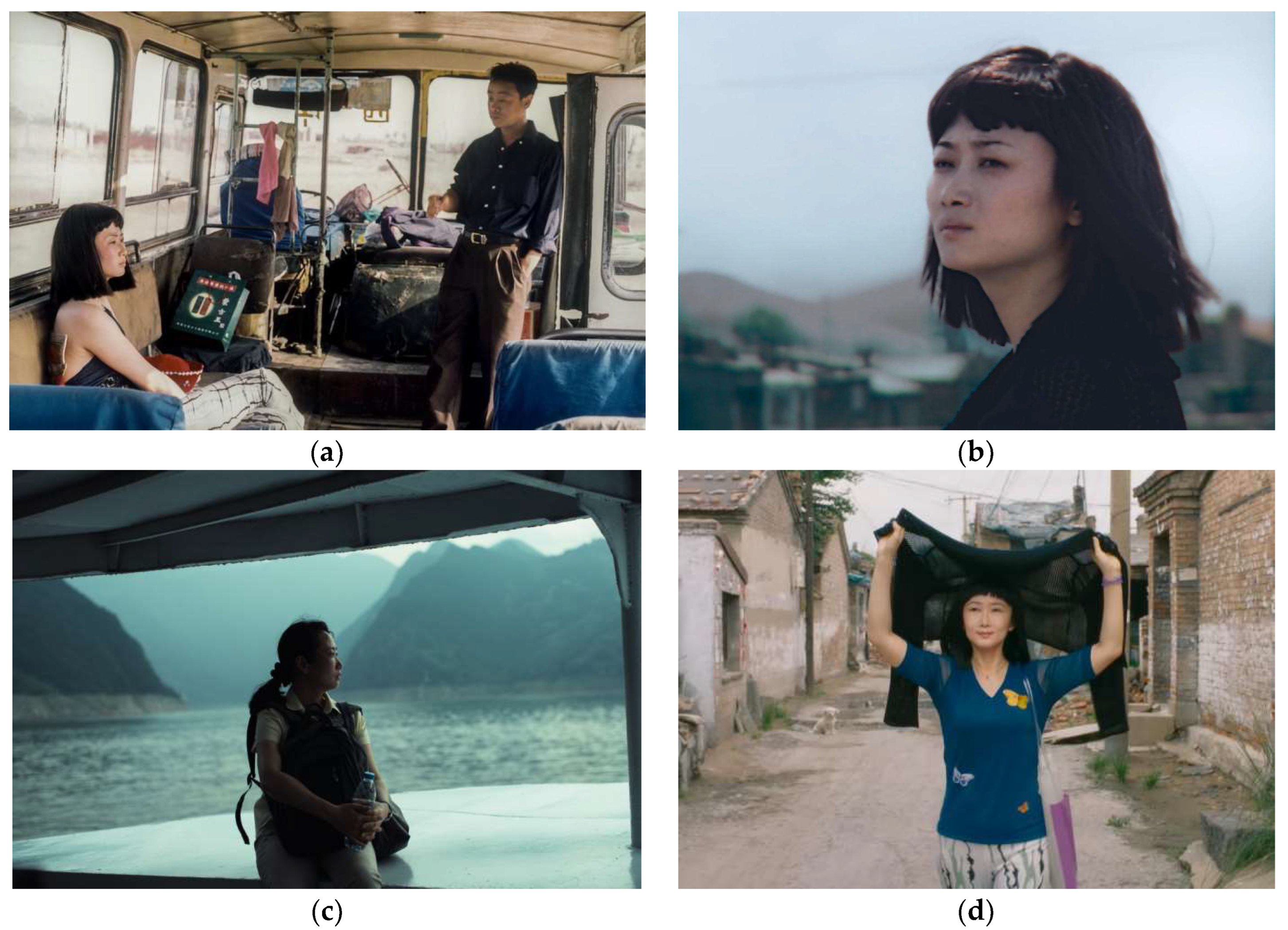 Chernova and Talalaeva 2020). This “silent form” within a non-silent film serves both as an homage to early cinematic aesthetics and a breakthrough in the boundaries of contemporary visual expression. It is well known that contemporary mainstream images mainly rely on dialogue and language logic to advance the narrative and shape characters. However, “The Generation of the Wind” has essentially conducted a bold “subtraction” experiment. By stripping away the redundant auditory information, the film forces the images to return to their core visual power, which is a rebellion and challenge to the current habits of image consumption. Especially in the era dominated by short videos and fast-paced editing, Zhao Tao’s performance in a near-silent film form urges the audience to slow down and invest more patience and thought. This is an important breakthrough in the contemporary paradigm of image expression and reception.