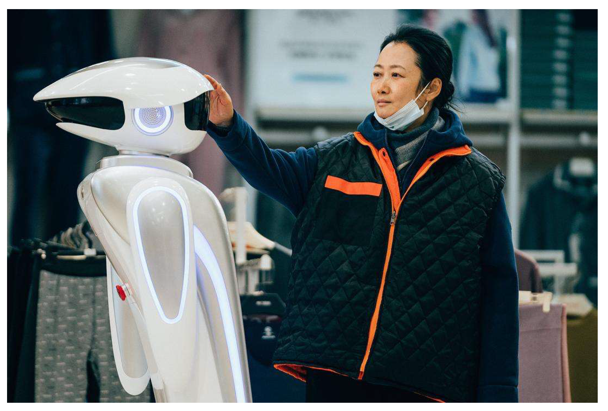 Figure 5). The facial design of the intelligent robot is not “anthropomorphic” in the traditional sense; instead, it embodies a fusion of technological aestheticism and functionality. It can not only replace humans in introducing supermarket products but also engage in dialogue through facial recognition technology. However, the robot’s “face” in