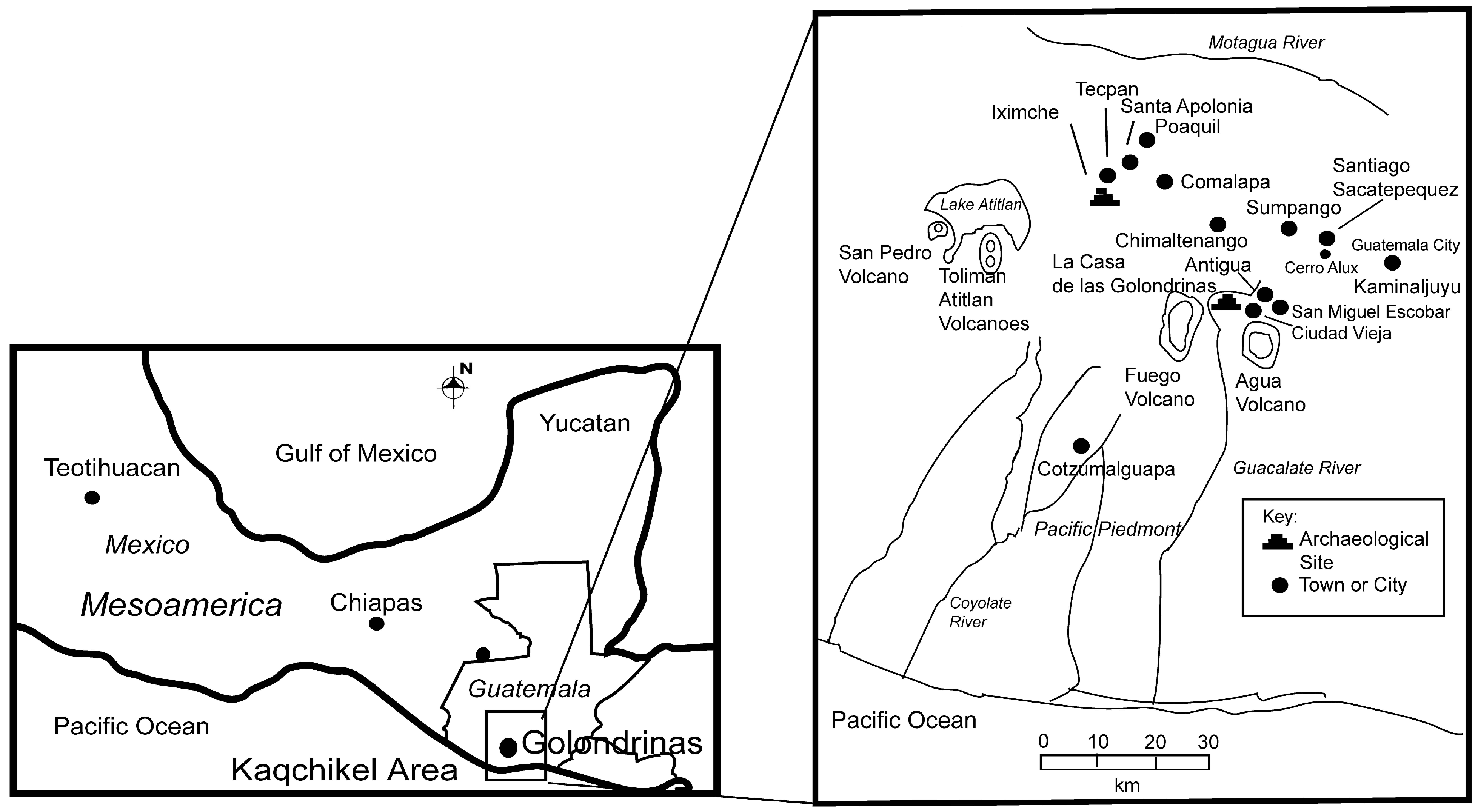 - Hill, Robert. 1996. Eastern Chajoma (Cakchiquel) Political Geography. Ancient Mesoamerica 7. Cambridge: Cambridge University Press, pp. 63–87. [Google Scholar]
