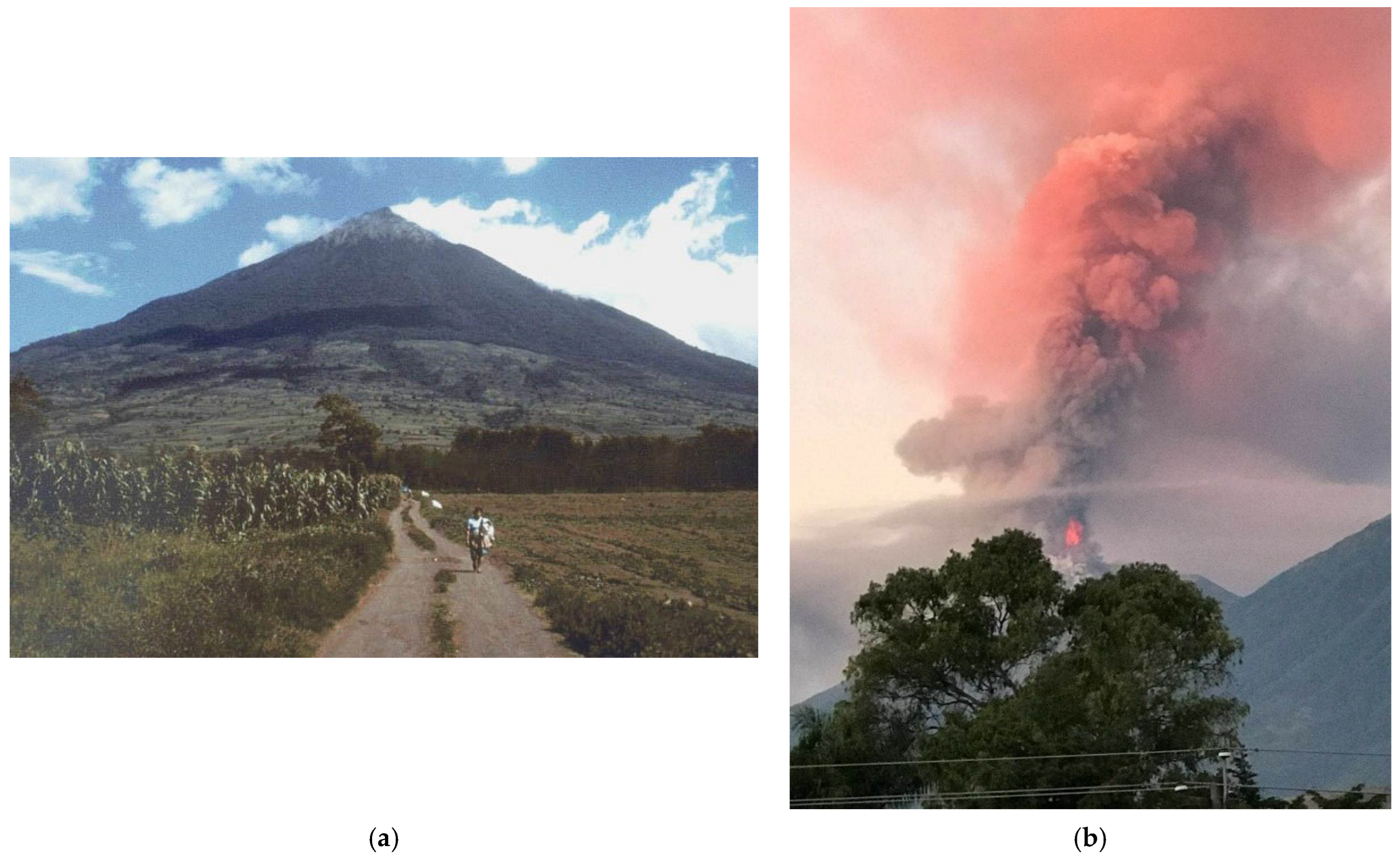 - Freidel, Dorothy E., John G. Jones, and Eugenia Robinson. 2011. Volcanic Eruptions, Earthquakes, and Drought: Environmental Challenges for the Ancient Maya People of the Antigua Valley, Guatemala. Yearbook of the Association of Pacific Coast Geographers 73: 15–26. [Google Scholar] [CrossRef]