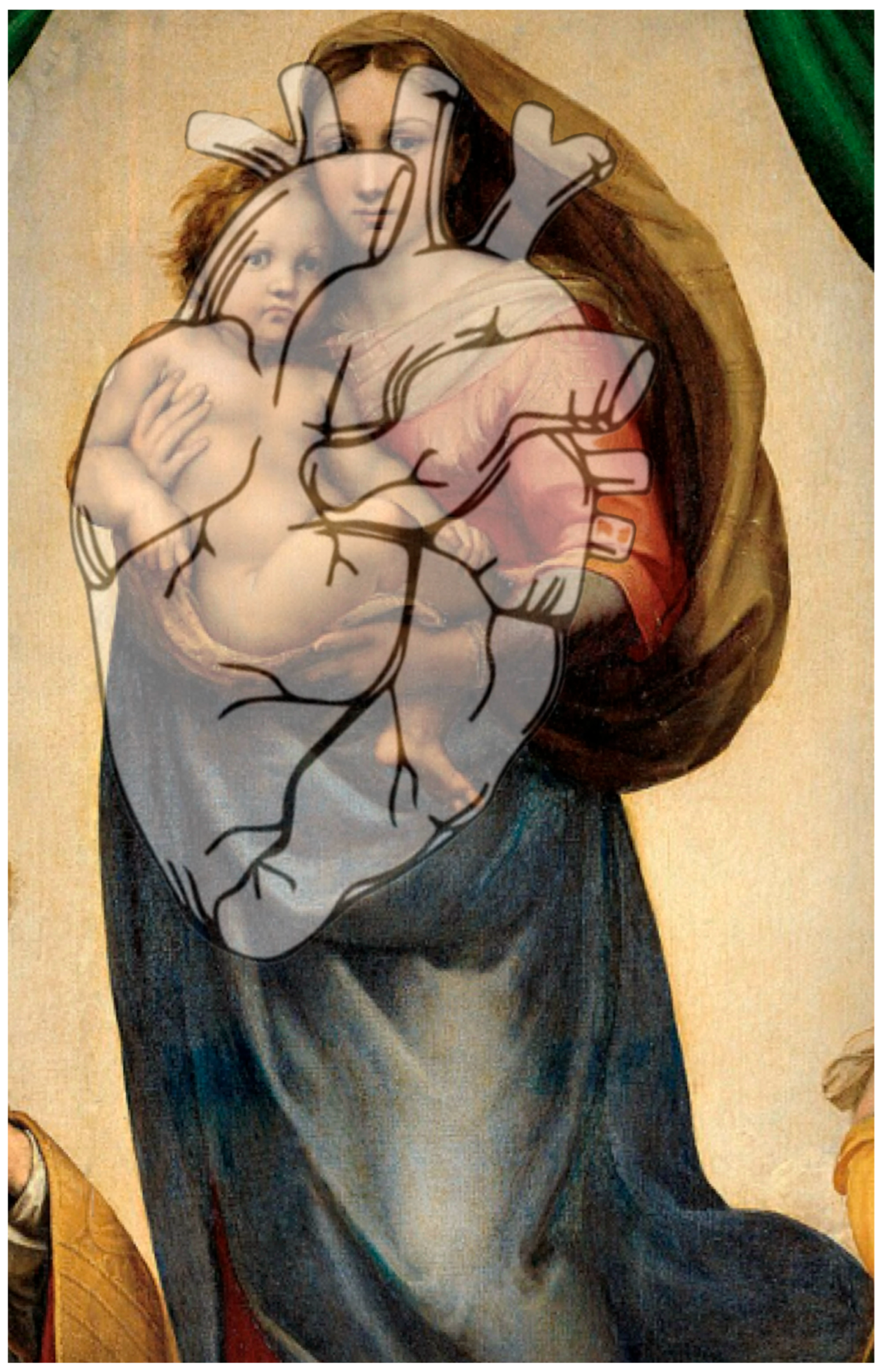 Section 3.3. While no direct line of influence can be established, Raphael was certainly familiar with the freshly completed Sistine ceiling, and the broader visual language of its dynamic enclosures could well have shaped his sensitivity to structurally charged boundaries. In this context, the heart-shaped configuration in the Sistine Madonna may be understood as Raphael’s own variation on the idea of a symbolic enclosure: a concentrated zone in which motion, meaning, and theological emphasis converge.