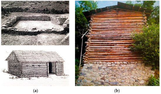 Sustainable building culture in Eastern Black Sea Region as: (a) Shows the foundations and restitution of the structure revealed in Boyabat/Kovuklukaya (Tuna 2008); (b) Shows the vernacular house at Cevizli Village/Artvin at present (Gür and Batur 2005).