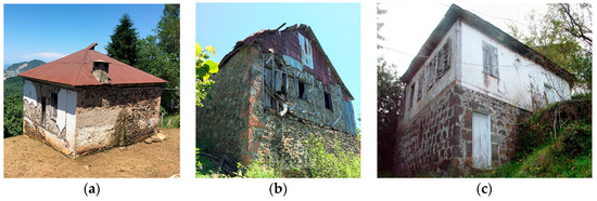 Vernacular buildings sited on sloping territories from (a) Ordu; (b) Trabzon; (c) Giresun (Photographed by Ömer Faruk Bayram).