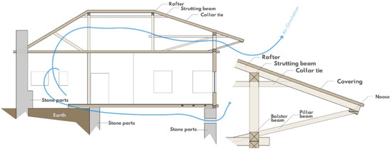 In addition, there are many lessons that can be learnt from vernacular architecture in terms of natural ventilation. Figure 11 shows a typical detail of a building designed for natural ventilation in the Eastern Black Sea Region. Eaves and foundation details have been developed altogether and formed for regular air circulation in the house due to the temperate humid climate of the region.