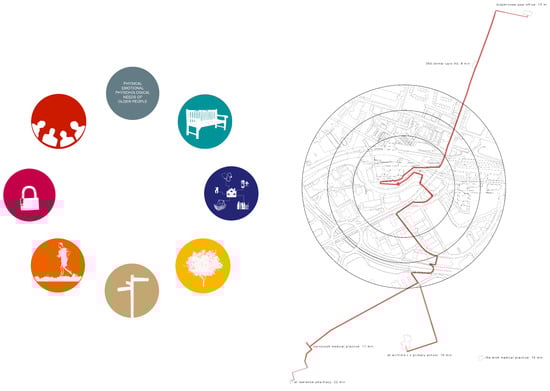 Through fieldwork and co-design activities in Manchester and London, we discovered a reasonable fit between the World Health Organisation’s Global Age-Friendly Cities Guide and other key UK guidance such as ID’GO toolkit on The Design of Streets with Older People in Mind (ID’GO 2007) and the concerns of older people in these cities. Key concerns were: assisted movement, close proximity to amenities, connections to nature, a legible environment, opportunities for physical activity, safety and security and social inclusion. Through the fieldwork techniques explained previously, students were able to then produce contextualised representations of these generic issues that illustrated clearly for designers and others how these issues manifested themselves in the particular places studied.
