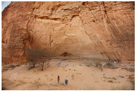- Lenssen-Erz, Tilman. 2012. Pastoralist Appropriation of Landscape by Means of Rock Art in Ennedi Highlands, Chad. Afrique. Archéologie et Arts 8: 27–43. [Google Scholar] [CrossRef]