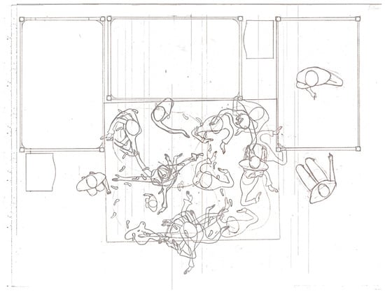 Dissect your space into zones, depending on your performed activities. Remember that these zones can overlap and intersect. Remember to look deeper into your activity—record it and represent it in human movements.