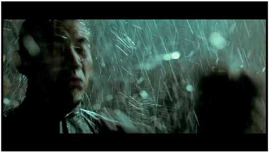 Raindrops interact with the actions. Frame capture, The Grandmaster (Wong 2013).