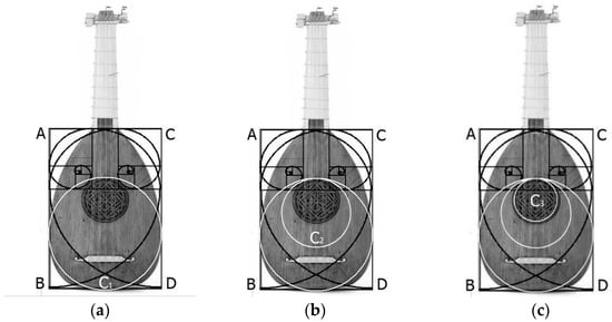 Note that C3 usually touches the spirals in the 4th golden rectangle (Figure 5b); it can be seen in Figure 5 that C3 precisely tangents on the sound hole of the manufactured lute. In this way, one can optimize the sound hole of any lute family instrument by relation between geometry and the golden ratio (Φ) or appraise the manufacturing process from the sound-hole design and location point of view.