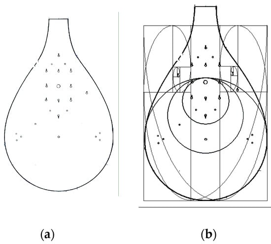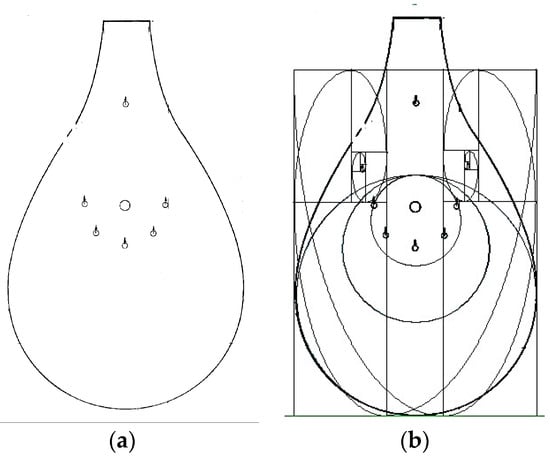 The first one is called the Delroba, shown in Figure 9a, designed by the legendary classical luthier Mehdi Kamalian (1918–1997) and is a well-preserved example of his work. Here, we analyze the air mode schema of this pattern for optimizing the sound-holes using the Golden Method.