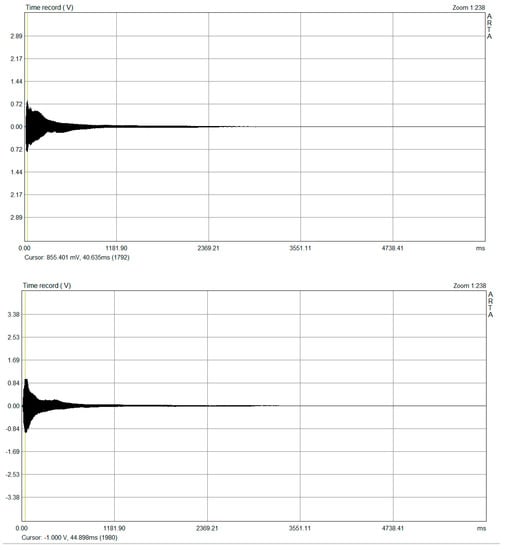 Figure 13 shows one time record graph for the Mahava. It is worth mentioning that experimental tests were conducted several times as discussed in the previous section, and the worst-case scenario results were selected to gain confidence about the validity of the analysis. Figure 14 compares the time response of the Delroba (Kamalian), Eshghi, and Mahava. The results obtained from the experiments are summarized in Table 1. As shown in this table, the Golden Method improved the radiation time of the Mahava by 2.4% and 3.2% compared with the Delroba and Eshghi, respectively. Moreover, the maximum recorded amplitude of the Mahava was slightly higher than that of the two other instruments.
