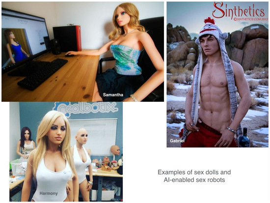 In Spring 2017, Abyss Creations, a 20-year old manufacturer of hyper-realistic sex dolls (trade-named “RealDoll”) with a loyal customer base, launched an artificial intelligence app (named “Harmony”) to augment the dolls’ already life-like bodies, giving them customizable personalities and allowing them to flirt and converse with their owners. Abyss is not the only such maker—from the USA to Spain to Japan, “the $30 billion ‘sex-tech’ industry has a race underway to create the world’s first commercially available AI-enabled sexbot, with dozens of firms contending” (Kleeman 2017). Figure 1 shows examples of sex dolls and their makers.