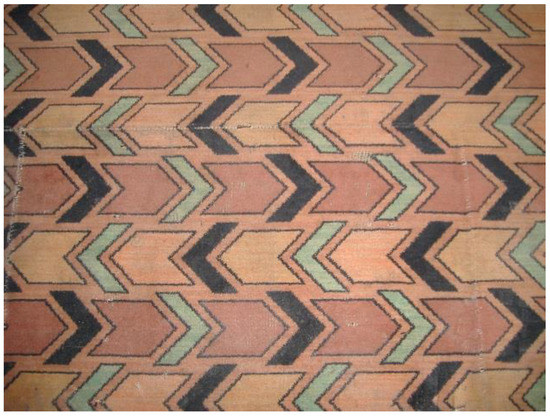 In regard to the artificial objects used to ornament a modern space, Wright obtained the finest luxuries ranging from bespoke clothing to precious ethnic rugs. His famous assessment, “so long as we had the luxuries, the necessities could pretty well take care of themselves” (Wright [1932] 1977, p. 140), rings true when we observe the luxury for the masses as a need to dazzle the vision of others through ornamental plasterwork in abstracting the natural landscape. The Griffins also designed their own carpets poignantly with abstracted geological imagery in garish colours in green and orange, as in the Capitol Theatre (Figure 6). Geological imagery casts a glamorous effect upon modernist Australian architecture through the concept of the constructed landscape. Similarly, the Griffins were fixated on geological (and botanical) imagery, especially the crystal, which for Burns, was a “manifestation of ‘evolutionary change’ of minerals growing steadily into perfect geometric types” (Burns 1988, p. 26). Furthermore, its “shape should be simple enough to be comprehensible and should be complete” (WB Griffin, quoted in Vernon 1995b, p. 40).