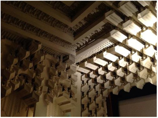 Within nineteenth-century European archaeological and natural history accounts, crystalline and prismatic formations as a natural characteristic were conceived as intriguing elements of landscapes with which architects could experiment. As Barry Bergdoll has shown, these types of geological references, specifically the cave-like grotto, as depicted, for example, in Joseph Gandy’s painting Architecture, its Natural Model (1838), offered a model for new architectural forms (Bergdoll 2007, p. 3). Bergdoll adduces the formal explorations of the Chicago School, namely Louis Sullivan (who twisted ornament from naturalistic forms) and Frank Lloyd Wright (who normalized them into plan and elevation embellishments), which experimented with such an ornamented vocabulary with much integrity. The Chicago School architects experimented with crystals and prismatic forms by transferring geological aesthetic motifs into their plasterwork designs to illustrating the method of creating modern ornamental luxury.