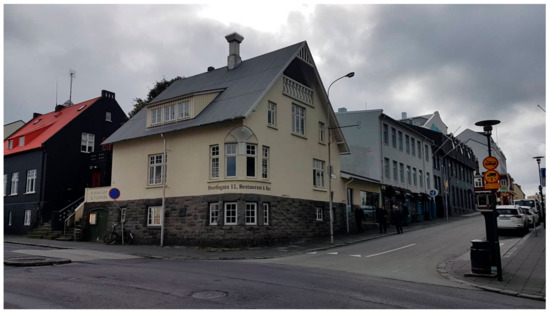 The harsh housing conditions of the Icelandic farmers in the countryside, who still mostly lived in shabby turf houses, became one of Guðmundur Hannesson’s obsessions, as he dreamt of offering his fellow countrymen more suitable and hygienic living standards. Consciously or not, he inserted himself into that “important line of propaganda which was to constitute the most effective argument of the partisans of concrete construction” (Collins 1959, p. 43). As suggested by Pétur H. Ármannsson, Guðmundur Hannesson might have visited the social housing project of Brumleby in Copenhagen, designed by Michael Gottlieb Bindesbøll and built by the Danish Medical Association between 1854 and 1872 (Pétur H. Ármannsson 2016). With such an ideal of communal housing in mind, Guðmundur Hannesson very soon started experimenting with drawing and building by himself. Already in September 1902, the newspaper Stefnir, printed in Akureyri, mentioned the doctor’s tests: building a house for his family and a small hospital in the town (Stefnir 1902). Yet, his first attempts at building with concrete date back to only 1910, when he was already in Reykjavík. There, he designed and built his own house at Hverfisgata 12 (Figure 2), one of Reykjavík’s most central streets and right in front of the newly built Safnahúsið [National Library], the last project designed by a Danish architect and the first public building where structural concrete was used (Seelow 2011, p. 57).