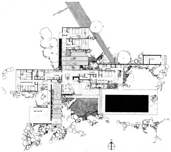 Richard Neutra, Kaufmann Desert House, Palm Springs, 1946–1947. Plan. (Published in Boesiger 1951, p. 71, permission courtesy Dion Neutra, architect ©).