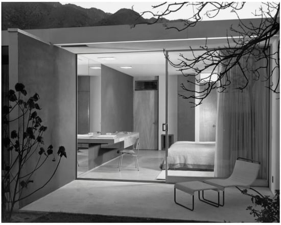 Furthermore, it has been noted that the “glamorization” of Neutra’s residences in photography, mostly by Julius Shulman, contributed much to their interpretation as luxuries (Glamourized Houses 1949; Niedenthal 1993; Friedman 2010): “Neutra’s houses, as they exist in photographs, are so polished, so perfect, as to seem impossible to achieve: as if their builders all wore white gloves and tabi […]: as if their owners never had an unpresentable moment or laid down a pair of sun glasses [sic]. The photographs have a kind of de-materialized glamour, almost that of soap and toilet paper advertisements […].” (Smithson and Smithson [1973] 1974, p. 26).