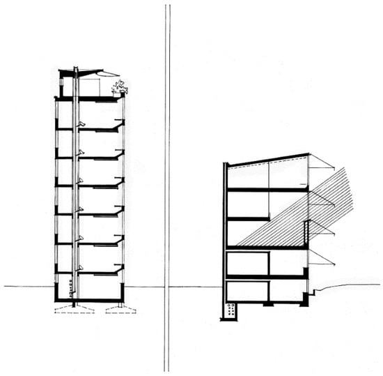 While the final window was not ideal from the architect’s perspective, it is likely to have been an acceptable compromise. Doctors had requested that the unsymmetrical steel windows not be to reach to floor level for reasons of hygiene. Aalto changed the windows accordingly so that the bottom edge of all window sections was level (Figure 6b). He also changed the shape of the floor so that it curved upwards. Visually, the window reached the floor in the realized version. The solution fulfilled the hygienic standards of the doctors, and the architect could preserve some essential design features. This example is illustrative of how designers work: Aalto reframed the problem and found an unexpected new solution, which combined seemingly different starting points. The case also showed the unpredictability of the evolution of technological solutions—at the beginning of a design project, it is impossible to know the outcome. Besides, without understanding how things came to be, the final artifact, in this case, the window, gives no clues to the process of which they are the result (Figure 6, Figure 7 and Figure 8). We need to look profoundly to the process to unveil the motives.