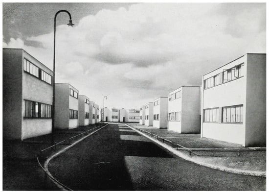 - Gropius, Walter. 1929b. Bericht über die Versuchssiedlung in Dessau. In Reichsforschungsgesellschaft für Wirtschaftlichkeit im Bau- und Wohnungswesen. Sonderheft Nr. 7, April 1929. Berlin: Reichsforschungsgesellschaft für Wirtschaftlichkeit im Bau- und Wohnungswesen, p. 23. [Google Scholar]