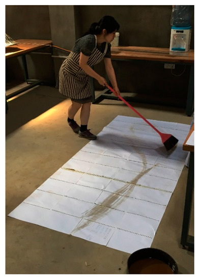 Figure 10) to transfer my whole-body movement into the marks. It was an attempt to experience the sense of getting into the drawing like the Abstract Expressionists had aspired to. At the end of the residency period, this pattern of brush strokes was made into glass using the ‘embedded glass technique’ explained above. The final piece (