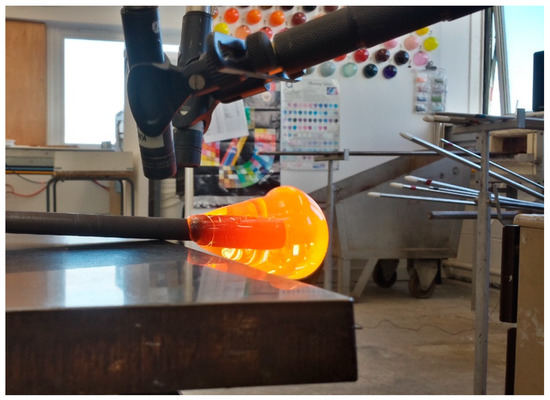 The history of glassblowing and the specific making processes involved have been well-documented with books covering centuries of glassmaking (Vávra 1954; Klein and Lloyd 1991) and museums such as the Museo del Vetro (2019) in Murano and the Corning Museum of Glass (2002a) in New York dedicated to the history, making, and collection of glass. Videos demonstrating the making processes are numerous with the Corning Museum of Glass (2002b) even offering regular live streaming, however, the sounds—a major output of the making process—have been relatively understudied. The sounds are both evidence of the making process and remains of the process, in much the same way as is the discarded glass, cast off in the workshop bins. Yet, the sounds are as inherent to the making as the intense heat of the furnace and the smells of burning wood and paper tools used to shape the glass. The glass studios are filled with sounds: the makers’ tools working the glass in various heated states, the breath of the makers inflating the glass, the glass itself under various stresses, and the heating/cooling equipment used in the processes. Glassblowers, especially beginners, even rely on the sounds of their tools on the glass to indicate material heating/cooling levels as they learn. Listening to the glass is often orally taught, but sociologist and glassmaker Erin O’Connor (O’Connor 2007, pp. 63, 71) indicates its importance in her writing. Understanding sound becomes part of the makers’ tacit knowledge as they listen to the glass to identify possible stressors while they work the material. The sounds of the glass studios are an integral part of the cultural and craft heritage of glassmaking.