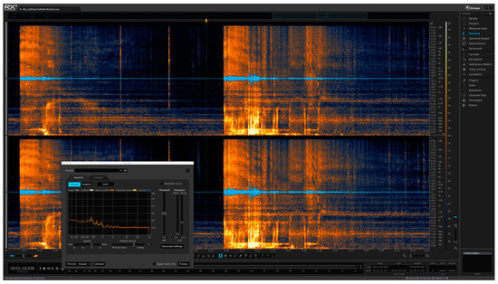 This is a screenshot image of RX (iZotope, Cambridge, MA, USA), one of many audio post-production tools used in audio manipulation by the sound design team (Image: David Faleris 2016).