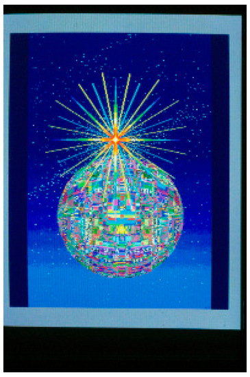 The Mandelbrot series is the first of Ostoja’s two still images series that we consider, that were created on the 32-bit Acorn Archimedes computer (see Figure 13, Figure 14, Figure 15, Figure 16, Figure 17, Figure 18, Figure 19, Figure 20, Figure 21 and Figure 22). In several news articles, it’s written that he “spent six months mastering difficult computer programs and now uses that technology and a mathematical formula, known as Mandlebrot [sic], to produce stunning images which he transfers to slides and sets to music” (, ).