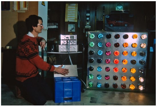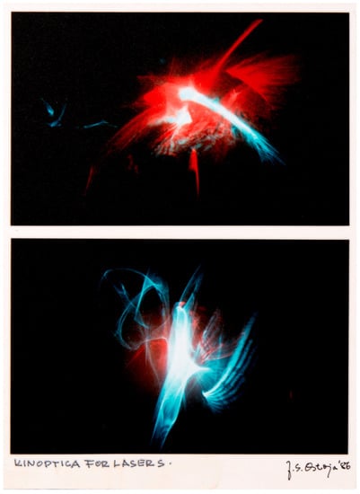- Ostoja-Kotkowski, Stanislaw. 1975. Audio-Kinetic Art with Laser Beams and Electronic Systems. Leonardo 8: 142–44. [Google Scholar] [CrossRef]