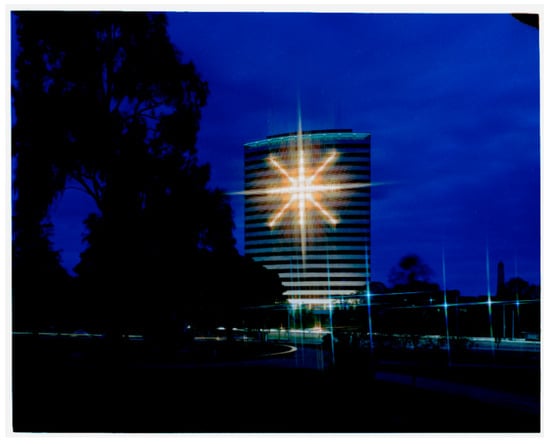 Photograph of a star installed on BP House, St Kilda Rd, Melbourne. We do not know whether it is one of Ostoja’s stars, or not. Mark Strizic, 1976, photograph of the Christmas Star installed on BP House, Melbourne. © the Estate of Mark Strizic. Published with permission. Image courtesy: Pictures Collection, State Library Victoria.