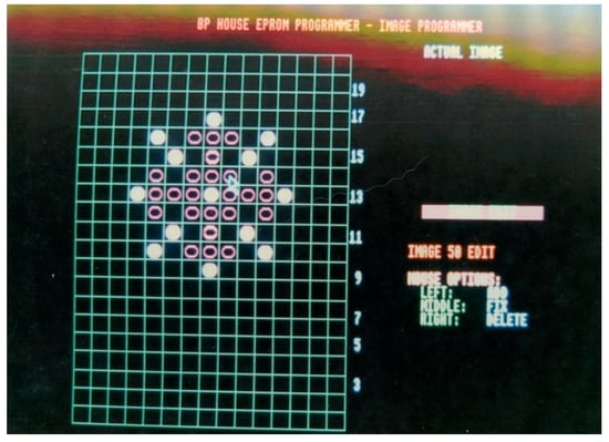 I wrote a program on the computer so Ostoja could program the images for the side of BP House in Melbourne for the Christmas display. Basically it was in a BASIC language on the BBC Micro. And I wrote a program so there was a grid on the screen, and he would manually—I think it was with a mouse back then, a very primitive mouse—go and turn on which lights he wanted to be on in that particular frame. He would then save it, he would then increment to the next frame, and then he would turn on and off the next light sequence he wanted for the exhibition. And then of course he could play it back and he would probably spend two weeks doing this, because it was like a nine by nine matrix of these lights. And when he’d finished with it I somehow got it out of the BBC Micro, probably on a floppy disc, and then I took it wherever I worked [where] there was an EPROM programmer. So I transferred the raw data into an EPROM and I would just clock that out with an opto-coupler multiplex circuit, and it would actually drive the light banks through the triacs. Because in Melbourne … someone else had made this big three-phase electrical controller which controlled these light panels on the side of BP House … And each one of them was kilowatts, and so it had this big three-phase control system. But I just outputted the information from the EPROM to this triacs which controlled the lights…and it would step through the images.(private communication)