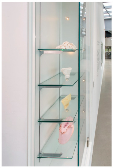 Material Journey (Figure 2: Material Journey (stages), 2018: processes displayed) thus became not simply a ‘finished’ final artwork but also detailed the unseen energy that went into its production evidenced in not only the carbon footprint calculations but also the visual representation of four distinct stages of its production in the exhibition itself (Figure 3: Material Journey (boat), 2018: exhibition shot). The making of a glass cast object can be identified by its six distinct stages—master model making, rubber mould making, wax modelling, plaster mould making and finally glass casting followed by the finishing stage of grinding and polishing. The carbon footprint calculations relied on available data, harvested from datasheets issued by manufacturers and from data sets produced by industry organisations. The carbon footprint calculation was divided into three distinct calculations. First, the direct emissions created by the materials used, including waste, and the energy used by equipment used in the making process. In the process of calculating the carbon footprint, I relied on the engineering expertise of freelance researcher Tom Jordan to assist. Although seven main gases are frequently produced in manufacturing processes, CO2 is the largest and main gas emitted and that is what we concentrated on (see Supplementary 2: Carbon Footprint Calculation Material Journey Excel File). In the first scope, we considered the direct embodied energy for the immediate materials used in the production of the work itself (glass, molochite, plaster, wax, rubber silicone, water) which we estimated to be 55.08 kilos of CO2. Secondly, we considered that the amount of CO2 created from the waste of the project was negligible as the waste itself was to become part of the project itself. Thirdly, we considered the carbon footprint of the equipment used in the production of the piece. This included the use of the car to travel to and from the studio to the National Glass Centre, the use of the equipment such as the kiln, wax steamer, and rubber and wax melting pot. The carbon footprint of the car was by far the biggest of all CO2 emissions of the actual equipment use itself. We estimated the carbon footprint of the equipment use to be 46.87 kilos of CO2 of which the car was 46.76 kilos. In the second scope, we considered the indirect emissions of energy from its production—the firing of the kiln, the melting of the rubber compound and the wax, the lighting and heating of the studio and the gallery where the work was to be exhibited for two months. This, we estimated to be 323.74 kilos of CO2. Finally, in the third scope, we calculated the indirect emissions from other sources, mainly emissions from transport—from the packaging in which the materials were delivered to the materials themselves, delivered by courier diesel vans. This, we estimated added another 2.9 kilos of CO2. Overall, we estimated that this project generated 428.62 kilos of CO2. An average tree can absorb 22 kilos of CO2 per annum. Therefore, we argued that this project would need 19.5 trees to absorb its carbon footprint in a year.