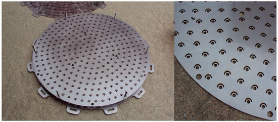 Through the author’s exploration with the use of the round RPT systems, it was found that the creation of glass bowls could be done by strategically positioning a limited number of pins rather than using pins in all of the matrix holes. The fluidity in the semi-molten sheet glass would result in the glass draping naturally between the pins. This method could best be termed as a selected pin positioning approach, and the author considers this approach to be a novel development in terms of using the RPT concept with glass forming in particular—and perhaps also in the context of RPT in general. This method for creating glass bowls was primarily driven by aesthetic preferences by the author. In particular, the author sought to creatively exploit the natural fluidity of the semi-molten glass as a key aspect of the aesthetics of the pieces. The author also considered the draping of the glass to be more attractive when viewed in reverse and, consequently, an approach was developed to use the RPT system to create glass bowls upside-down. This approach also enabled the author to use three pins to create tripod feet for the bowls to stand securely on (see Figure 9).