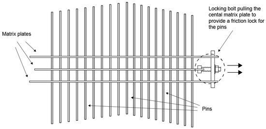 A final key element to be added to complete the system was the pins. These were made from 4 mm marine-grade stainless steel round bars which were cut and ground into lengths of 300 mm. Supporting jigs were also constructed to aid this particular aspect of the construction process.