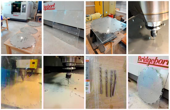 One aspect of the RPT systems which was not fabricated via laser cutting was the pin holes in the matrix plates. This aspect of the tooling system was deliberately left to be implemented via Computer Numerical Controlled (CNC) milling in order to achieve the highest possible level of precision as the pin locking would be highly depended on the accuracy of this aspect. To achieve a high level of alignment of the holes in the matrix plates, all three plates were machined in one operation—with the plates stacked and bolted securely together while the holes were being drilling with a CNC milling machine (see Figure 6). However, this part of the tool-making process required the creation of additional supporting elements such as a customised jig, to enable the matrix plates to be held securely to the bed of the milling machine. The hole-making operation process was particularly challenging due to the hardness of the marine-grade stainless steel, with a high number of cobalt drilling bits expended in initial attempts before the task was finally achieved through the use of a specialist carbide milling bit.