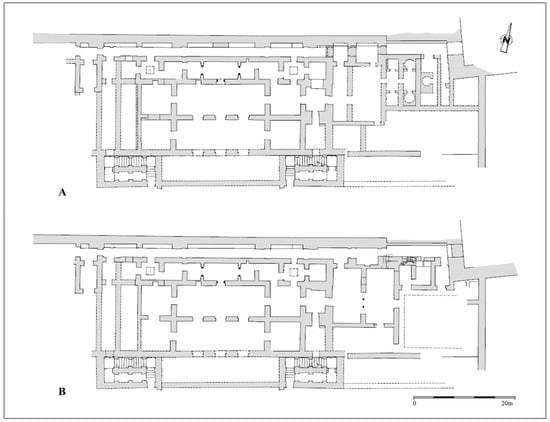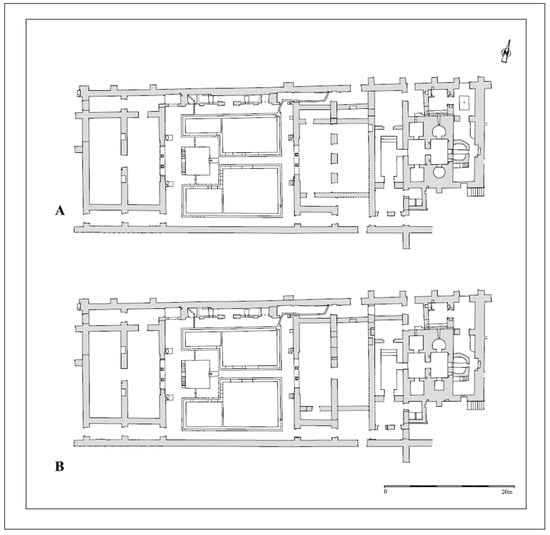 Construction phases of Dār al-Mulk: (A) first phase; (B) second phase (Vallejo Triano 2010, Figure 53-1).