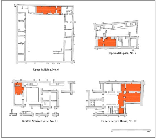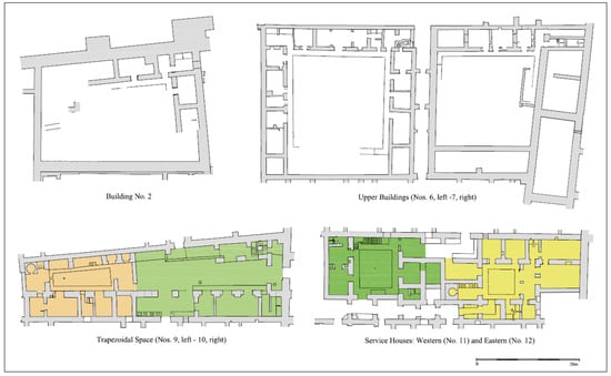 Hierarchical structure inside the residences (Nos. 6, 9, 11, and 12). Own elaboration on the plan of Vallejo Triano (2010, Figures 9 and 56).