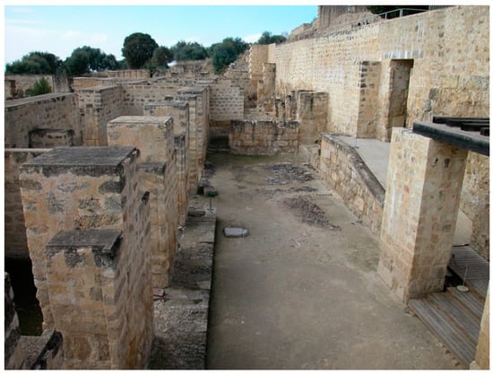| 50 | The analysis of that western part of the Alcazar and the medina can be found in (Vallejo Triano 2010, pp. 184–85, 227–28). For the mid-10th century, the sources raise the number of the stipendiary troops at the service of the caliph to some 5000 soldiers (Acién Almansa and Manzano Moreno 2009, p. 335), a part of which would have been quartered in Madīnat al-Zahrā’ and would have carried out the duties of a palatine guard. |