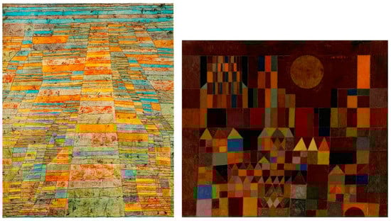 Highway and Byways by Paul Klee, 1929. Right: Castle and Sun by Paul Klee, 1928. Public domain images.
