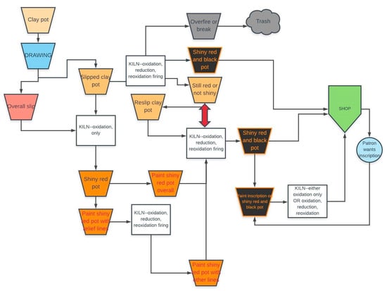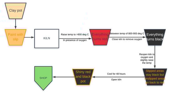 Multiple pathways for producing red and black ceramics, as tested experimentally.